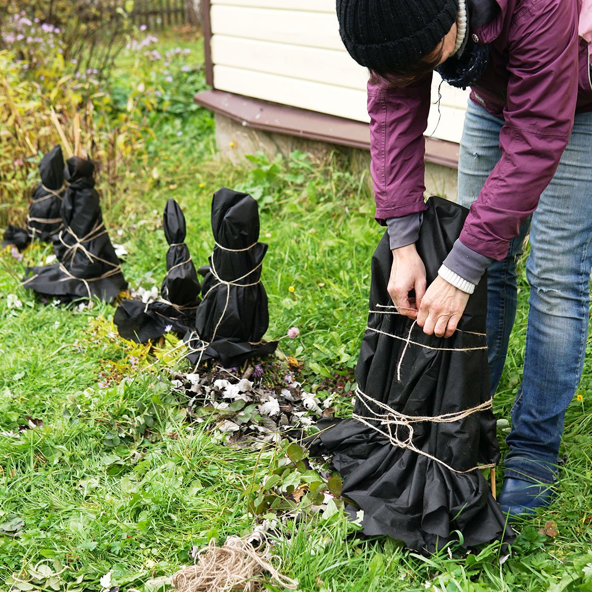 - Dekk de mer frostfølsomme plantene med spesialfrostduk eller fleece.